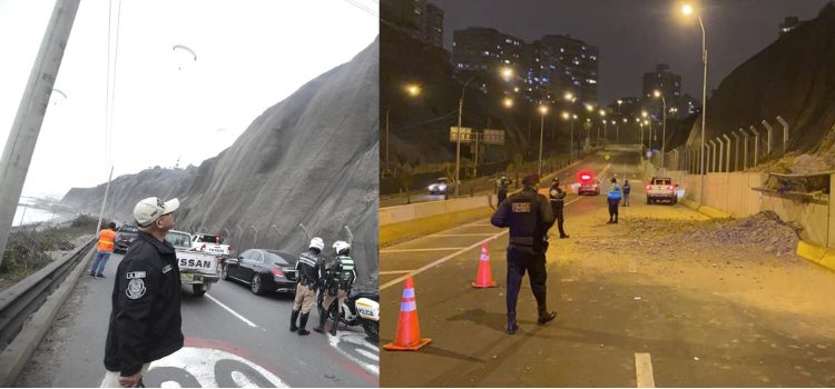 El circuito de playas de la Costa Verde, diferentes usuarios reportaron deslizamientos de piedras desde las laderas que rodean el lugar La caída desde el acantilado alzó una gran polvareda que imposibilitó la transición de los automóviles y obstruyó la visibilidad de los conductores. En ese marco, personal de serenazgo de Miraflores y efectivos de la Policía Nacional del Perú (PNP) cercaron la zona para evitar una tragedia mayor.