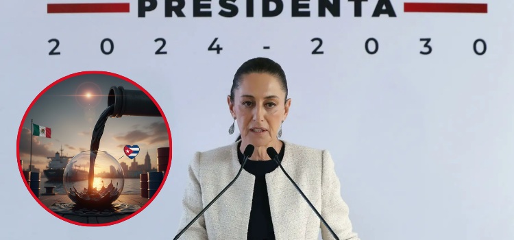 [La presidenta de México, Claudia Sheinbaum, asegura que el envío de petróleo a Cuba, no traspasa la cantidad que se le ha enviado anteriormente. Imagen: Gemini IA – ANDINA / Composición: RS]