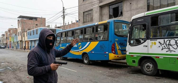 [Bandas extorsionadoras triplican cobros de cupos y provocan ola de violencia en transporte público limeño. Imagen: Gemini IA]