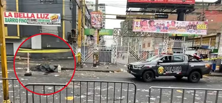 [Agentes de la policía acordonaron la zona comercial de Gamarra, donde ocurrió el asesinato a consecuencia de una violenta balacera. Imágenes: Buenos días Perú / Composición: RS]